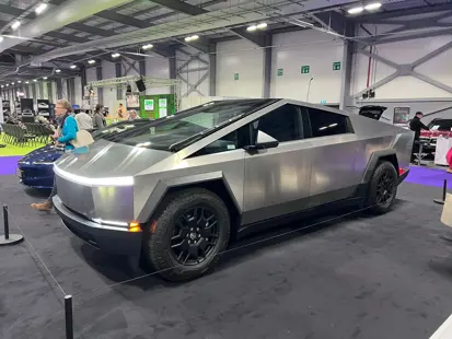 One of the most talked-about vehicles at the event was the Tesla Cybertruck. Seeing it in person was quite an experience; its massive size is truly astonishing. While the Cybertruck’s design is futuristic and bold, I couldn't help but question how it would navigate the often narrow and congested roads of the UK. Its dimensions may pose challenges in urban settings, prompting a discussion about the practicality of larger electric vehicles in such environments.